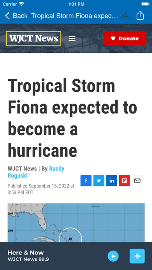 • The WJCT Public Media app displays the web page associated with the program or program segment you are listening to On Demand so you can explore for more information.