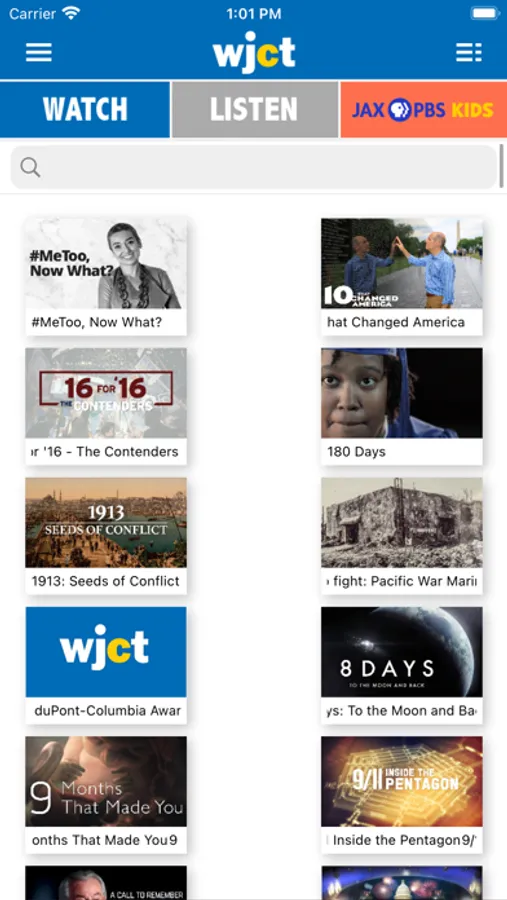 The WJCT Public Media app allows you to listen and watch WJCT radio and television, pause and rewind the live audio, and view the program schedule all at once! You can explore On Demand content, search for programs, bookmark a program for later, and wake up to WJCT with the alarm clock!