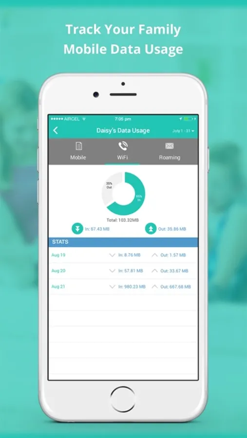 Keep your phone bill from rocketing with this important parental monitoring function. Our app allows you to monitor data usage of all your family phones from your own phone. We will show you the daily, weekly, and monthly data usage of all the phones linked through our app.