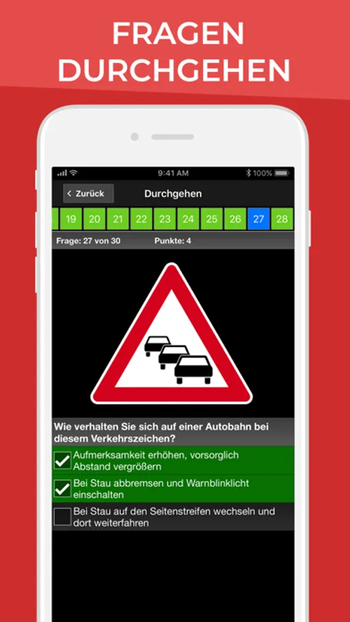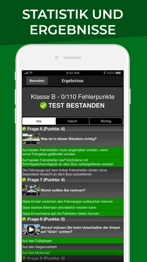 100% reale Prüfungssituation zur optimalen Vorbereitung auf die theoretische Führerscheinprüfung. Am Ende kannst du die Fehler überprüfen und den Test noch einmal komplett durchgehen.