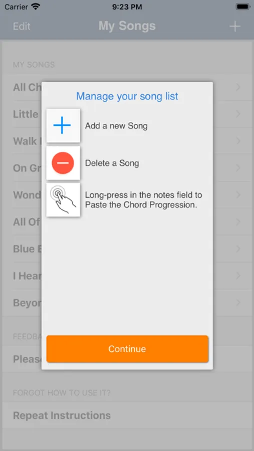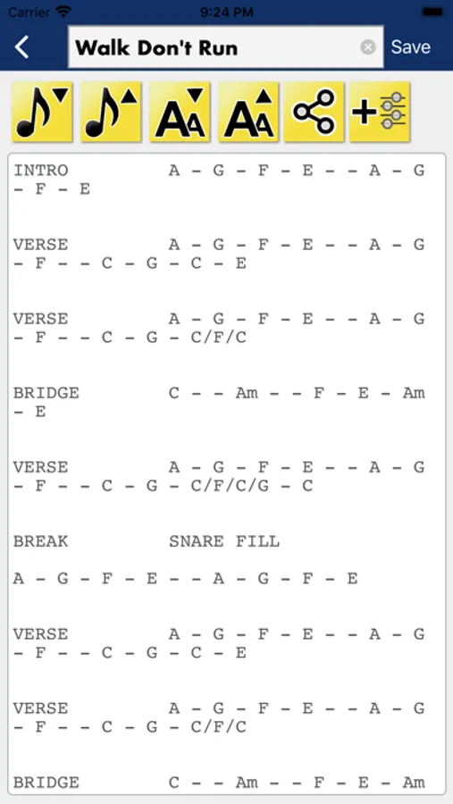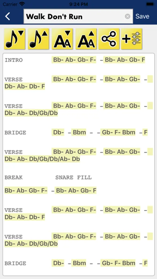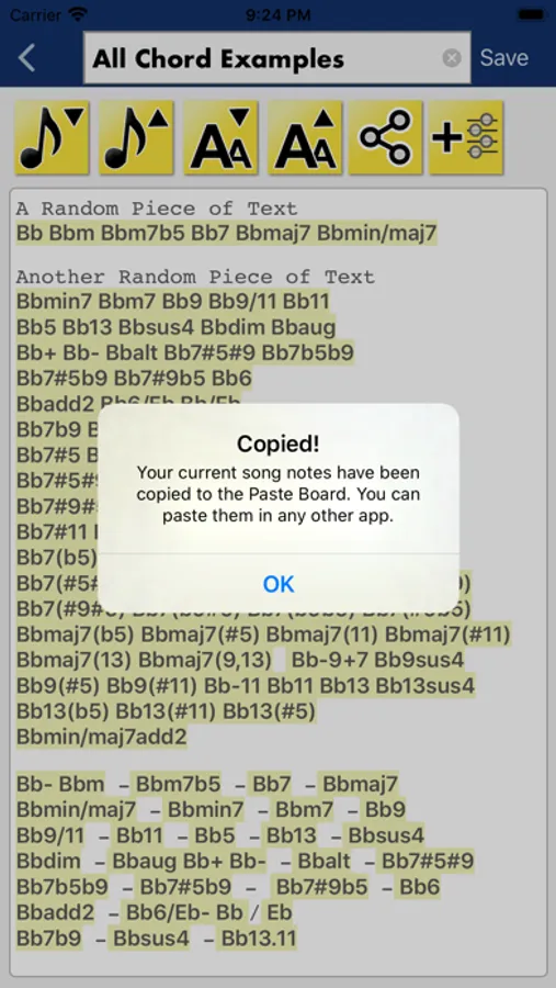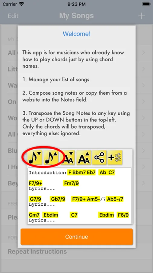This app is aimed at the musician who needs light-weight music performance note taking and already knows how to play all chords just by looking at their names, on any instrument. (For example: C9 or Abmin7)