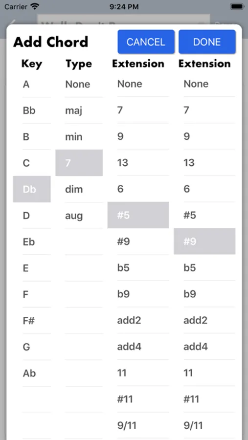 - The "Add Chord" wizard contains all possible extensions which you can combine with the Key and the Chord Type.