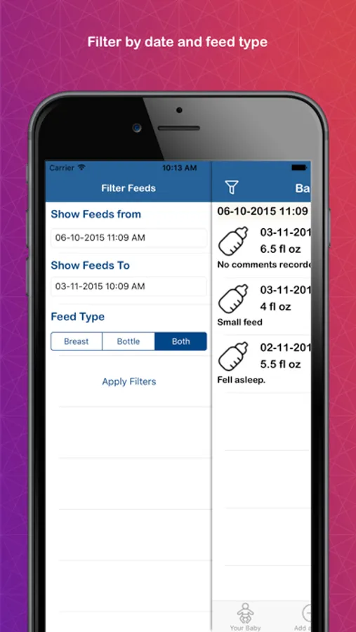 • Baby Feeding Tracker – Track bottles, pump log, or mixed feeding with accuracy