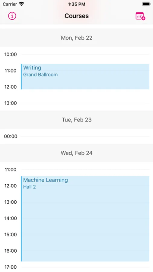 CourseBot offers you a clean and beautiful designed Course Graph, thus you are able to check out courses by day or by week.