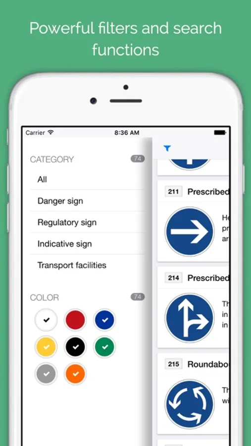- Minimal design with a clean interface, SVG vector image for all road signs, offer you a smooth user experience