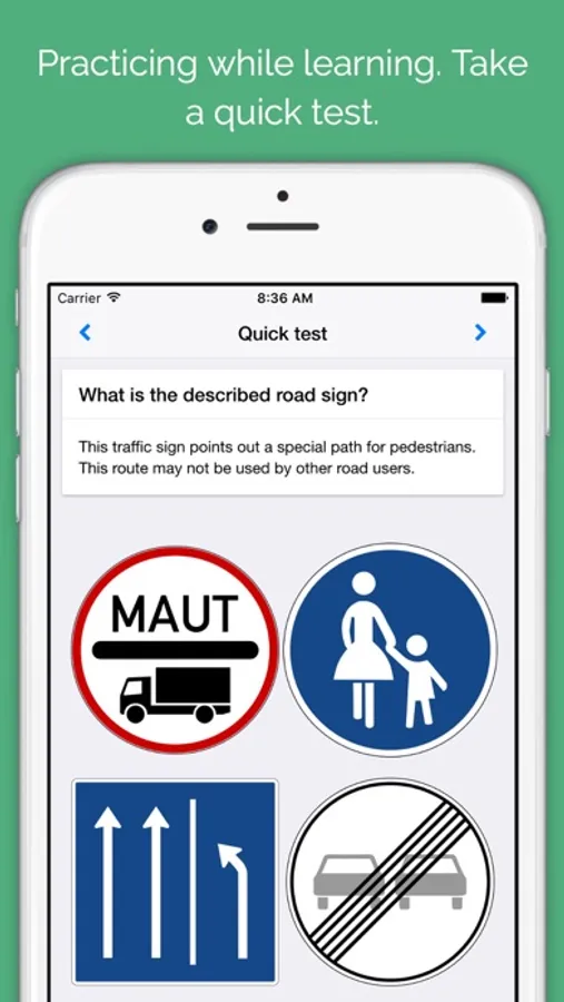 Verkehrszeichen Guru (VZ Guru) helps you to learn German traffic signs better and faster.