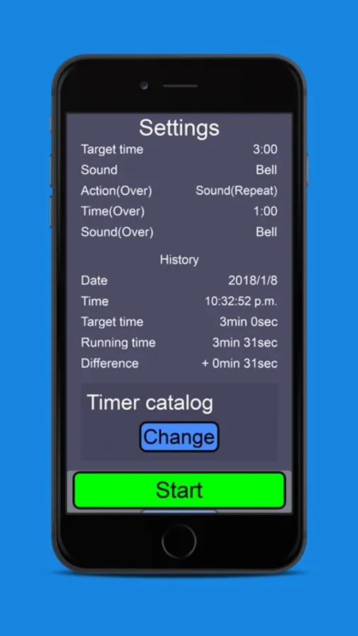 Time and the alalogue chronograph are displayed so that the remaining time can be recognized easily. Moreover, you can confirm when you executed and how long it had taken and completed by that history funcion later.