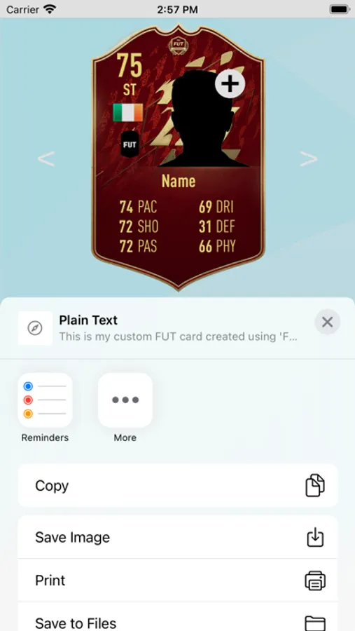 You can customize a number of features including: choosing the name, all the statistics, and also use the front camera to get your face on the card!