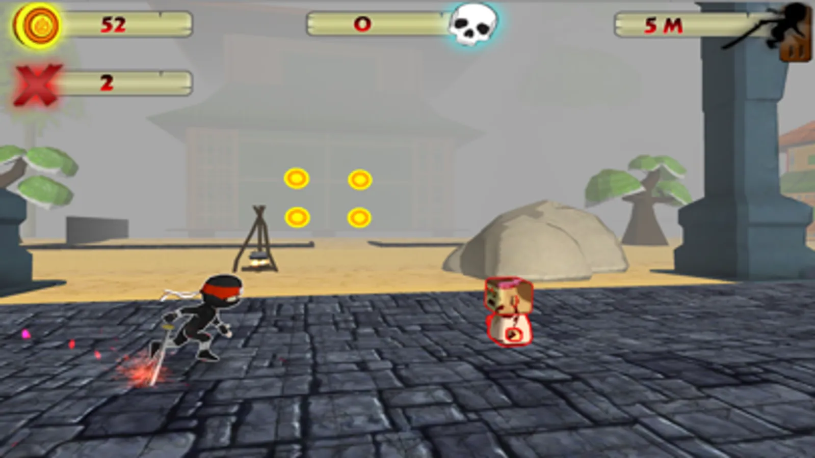 Ninja vs Zoombies is a 3D side- scroller running game. It is an adventurous Ninja game with beautiful environment. One Ninja, one sword and lots of zombies. Defend yourself by killing the coming zombies using the sword at right time and clear up all the blocking zombies, travel as long as by avoiding the obstacles. Collect the coins to upgrade your character. You have choice of choosing the Ninja character Earth, Fire, Water, Sky Ninja.