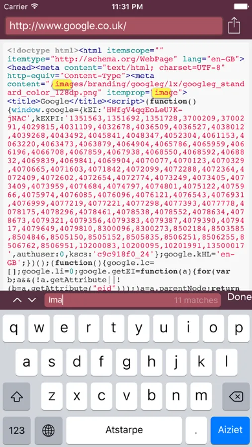 HTML source code, CSS and Javascript browser with syntax highlighting and search!