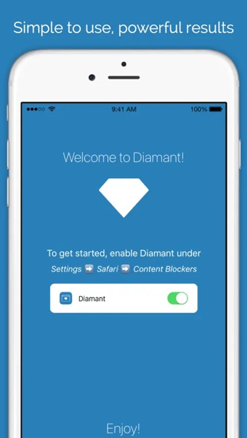 Diamant blocks all types of ads and improves website load times and saves data usage and battery life of your devices. Diamant implements directly to Safari, the only thing you need to do is enable Diamant and browse away!