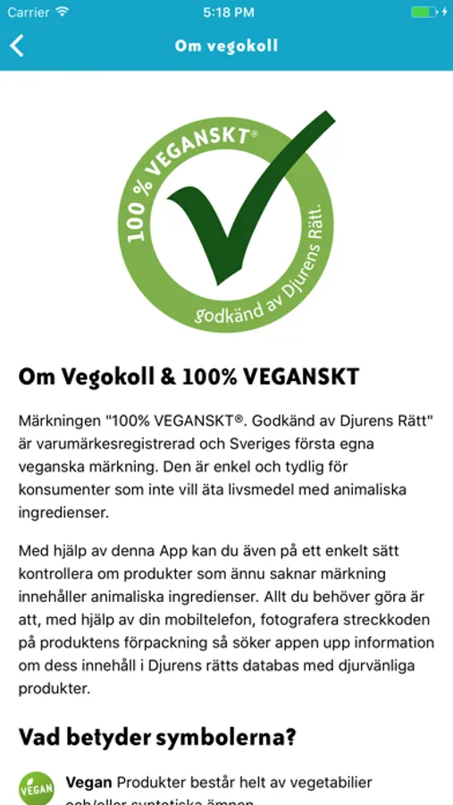 Med hjälp av denna App kan du på ett enkelt sätt kontrollera om produkter som ännu saknar märkning innehåller animaliska ingredienser. Allt du behöver göra är att, med hjälp av din mobiltelefon, fotografera streckkoden på produktens förpackning så söker appen upp information om dess innehåll i Djurens rätts databas med djurvänliga produkter.