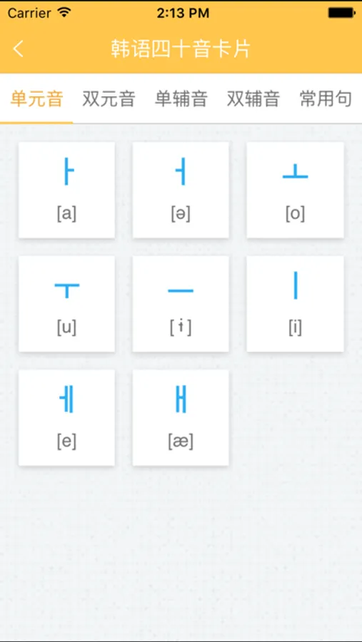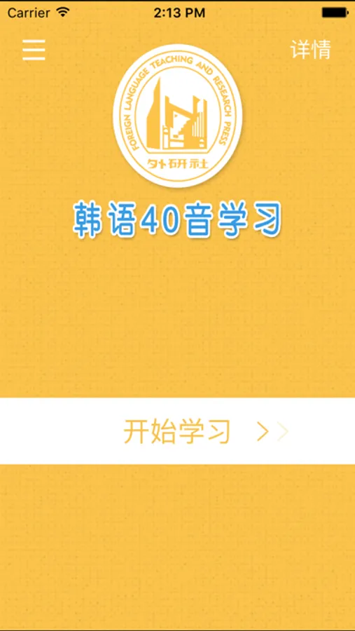 这是一款非常实用的韩语学习软件,根据外研社正版发行的《我最爱的韩语40音卡片》开发而来,专为韩语初学者设计。软件以四种颜色区分单元音、双元音、单辅音和双辅音;音标标注发音,便于模仿;以颜色和数字标注笔顺,清晰明了;给出对应单词的实景图片及中文释义,寓教于乐,轻松掌握;标注韩文输入法字母键盘,打字快速入门;包含64句韩语实用日常用语例句。