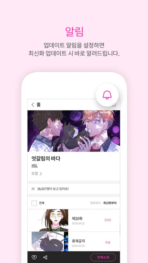 관심작품의 회차 업데이트 알림을 받아 바로 확인 할 수 있습니다.