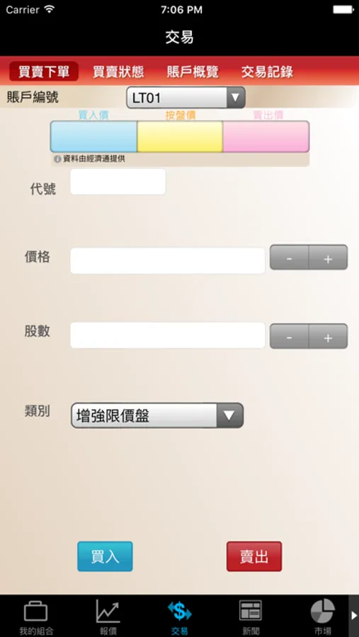 「股票交易」 - 提供「賬戶概覽」、「買賣下單」、「買賣狀態」及「交易紀綠」,操作簡易。