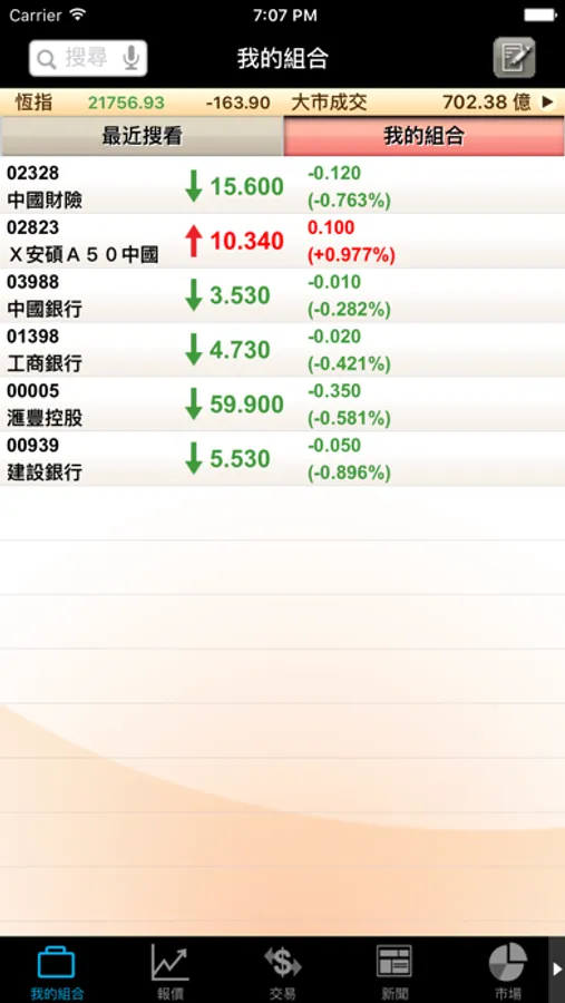 「我的組合」 - 自設最愛股票投資組合,緊貼最新的股價動向。