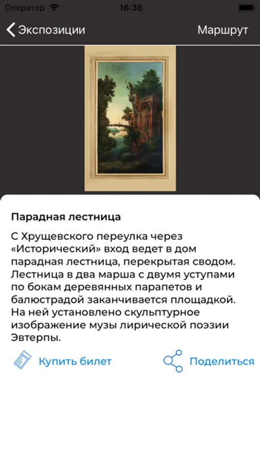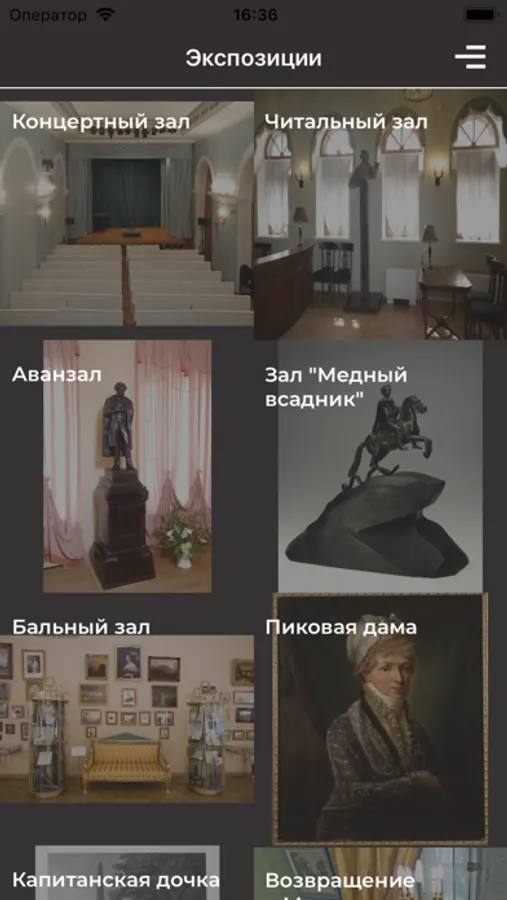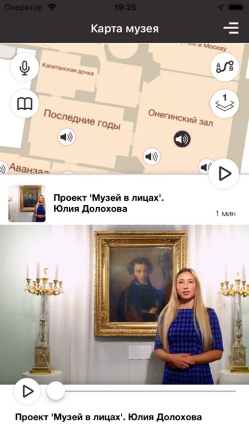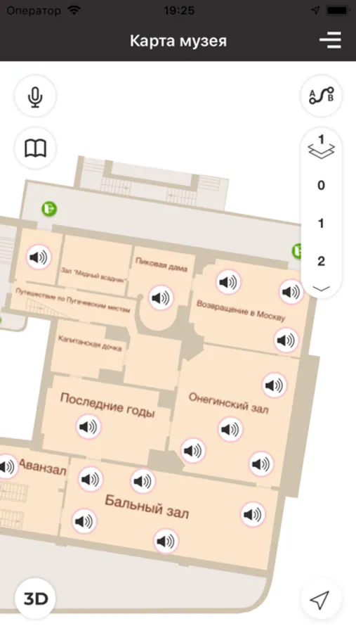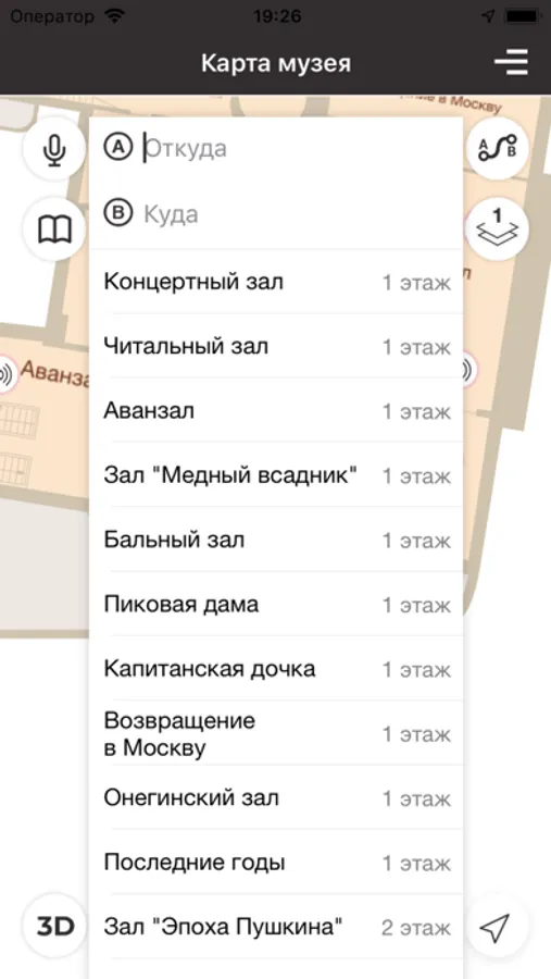 В мобильном приложении представлены карты помещений музея с информацией об экспозициях и возможностью навигации.