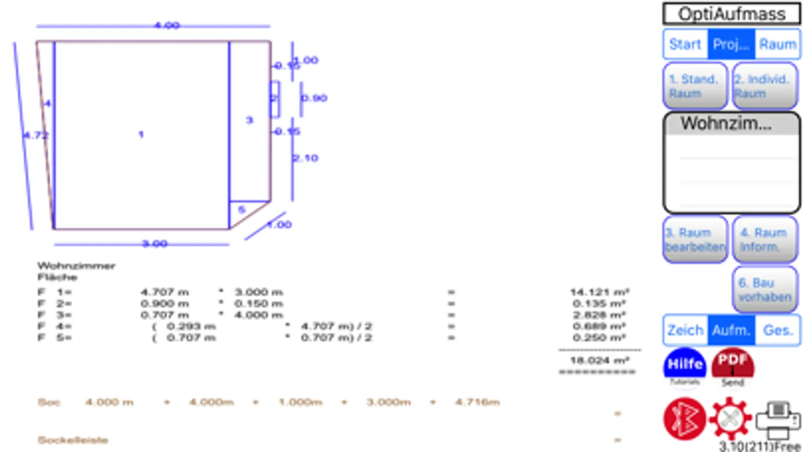 OptiAufmaß Free ist eingeschränkt auf 3 Projekte mit maximal 30m² Gesamtfläche je Projekt bei vollem Funktionsumfang.