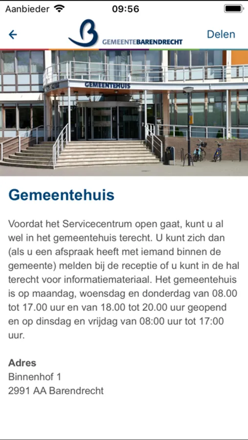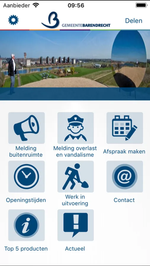 De Gemeente Barendrecht App. Deze functionele app bevat o.a. online afspraken maken, melding openbare ruimte en vandalisme, informatie over werk in uitvoering.