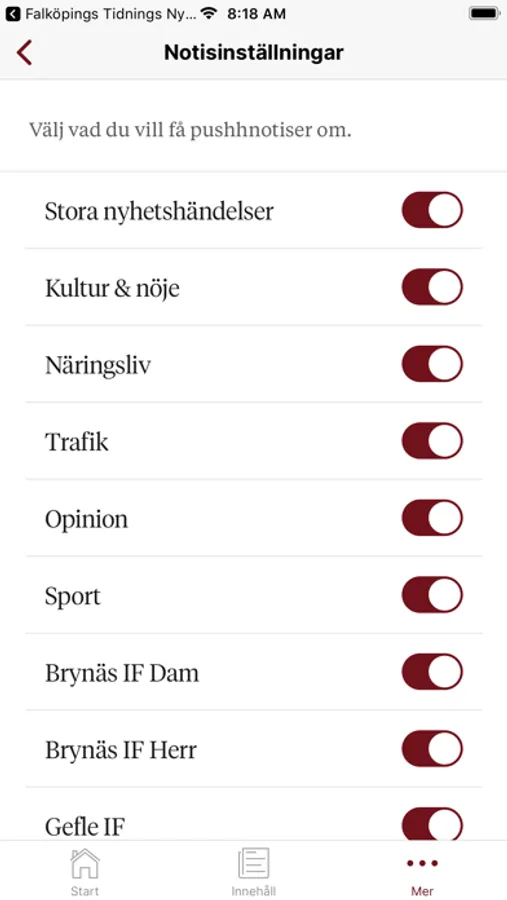 • Prenumerera på nyhetsnotiser om ditt favoritlag eller ämnen som intresserar dig – så hänger du alltid med.