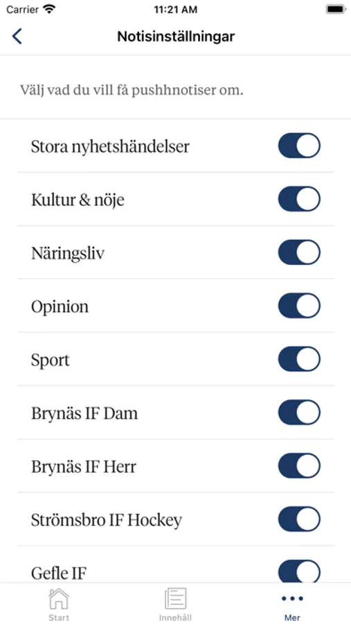• Prenumerera på nyhetsnotiser om ditt favoritlag eller ämnen som intresserar dig – så hänger du alltid med.