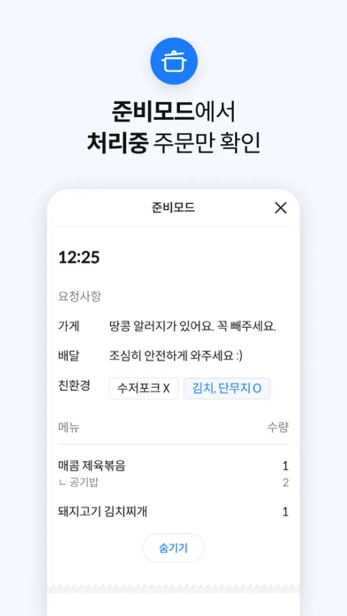 - 목록 맨 위에서 깜빡거리는 오래된 주문부터 확인하세요.