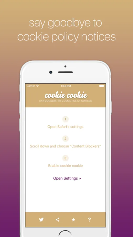 You can get cookie cookie running in just 3 simple steps after downloading, it's super easy and you'll spend significantly less time dismissing cookie policy notices while you browse.