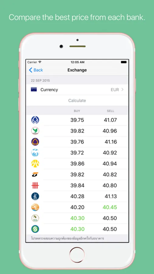 - Compare the best Buy-Sell price from each bank (Highlight green colour is the best price).