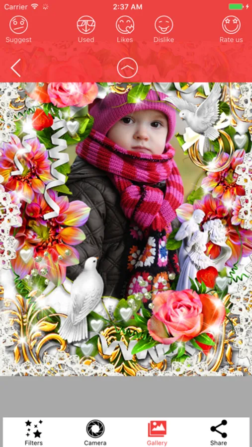 It's great to edit pictures of my daughter. I love this app because it has so many custom frames for pictures for so many occasions.I love these custom frames, they are unique and different. I love how their are new custom picture frames to go with each holiday as well