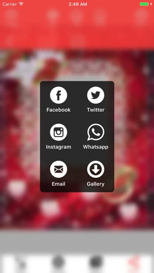 Share on Facebook, Instagram, Whatsapp, Mail, Photo Library and many other installed applications.
