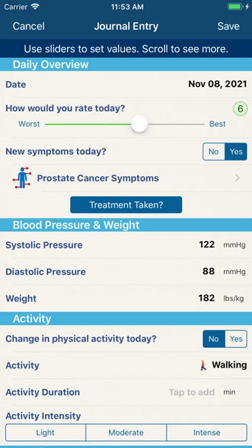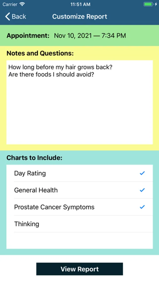 For many, the best part of using Prostate Cancer Manager, is seeing moods, pain, medications—even how often they journal—in colorful pie charts. When your health journey is presented this way, it is easier to spot trends, notice strengths, and identify areas of concern.