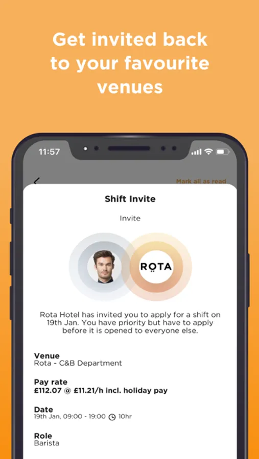 Finding work is now as easy as ordering a ride or getting your dinner delivered. The work finds you from the comfort of, well wherever you like. Rota allows you to select shifts at times and locations that suit you. Fit us around your main job, work in between auditions, or have a month off to study – it’s entirely up to you! Also you can have work assigned or be requested from your own work provider where they utilise Rota’s Total Workforce Technology solution.