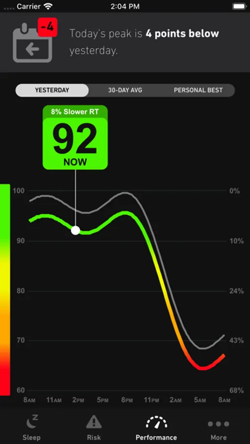 Any disruption to your normal sleep, whether from sleep loss, jet lag or night duty, can significantly impact your ability to perform safely and effectively -- whether you're on duty in a dangerous job, and on the field as an athlete. Specifically, sleep impacts your cognitive performance and your reaction time. ReadiOne uses a proprietary biomathematical model to analyze your sleep in order to quantify and predict the impact it will have on your performance for the day ahead.