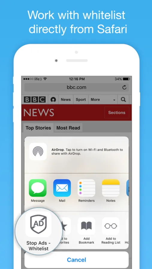 Stop Ads is the ultimate ad blocker for Safari running on iOS 9 (iPhone and iPad). Forget about annoying ads, suspicious scripts and having to wait for your favorite websites to load their content AFTER banners – Stop Ads will make sure you’ll get to your content in no time! A must-have app for anyone looking to optimize their cell data consumption and dramatically reduce the amount of useless ads.