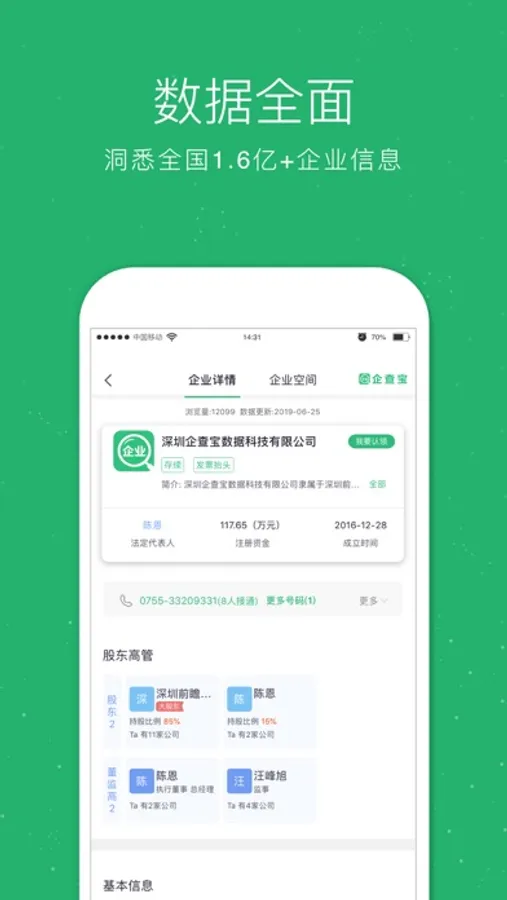 信息全面:和工商局等数十个国家权威网站同步对接,全国企业信息一目了然。