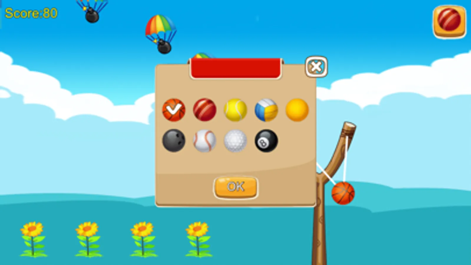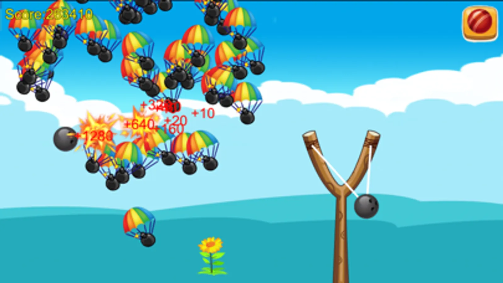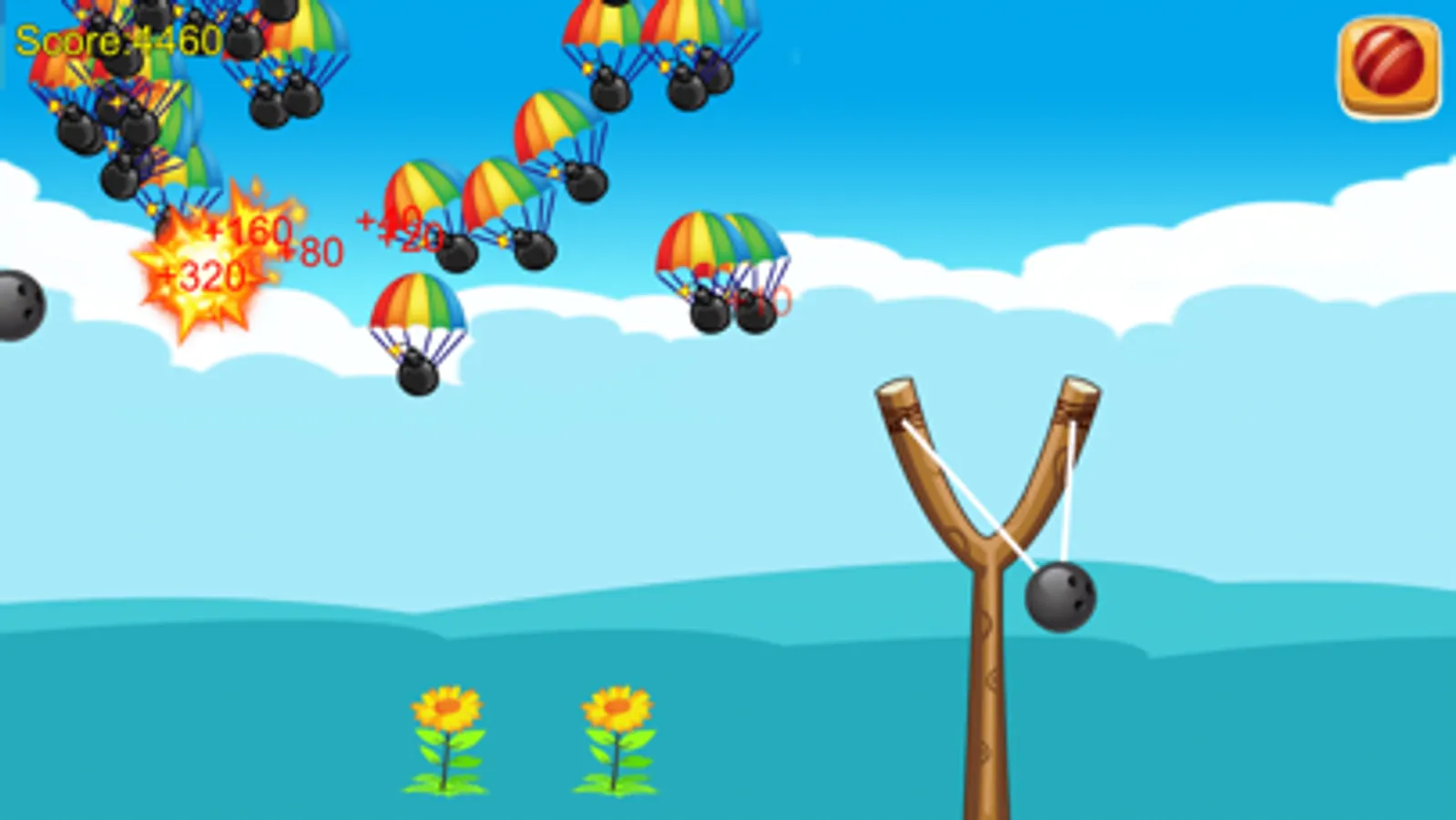 Use your finger to pull back on the rubber band and launch balls. Blast bombs before they reach ground and kill the flowers. The farther back you pull, the farther your balls will fly!