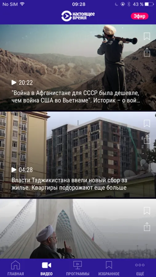 • Видео передач и отдельных репортажей телеканала Настоящее Время – по вашему запросу.