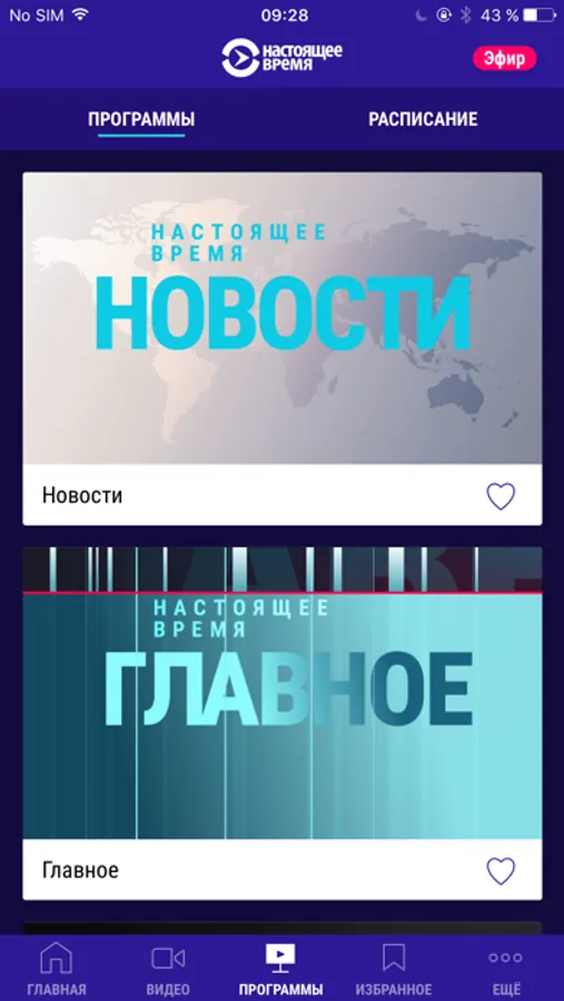 • Расписание передач телеканала Настоящее Время с возможностью получать уведомления о свежих выпусках ваших любимых программ.