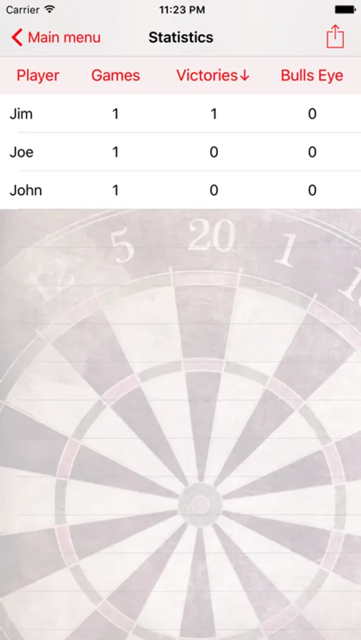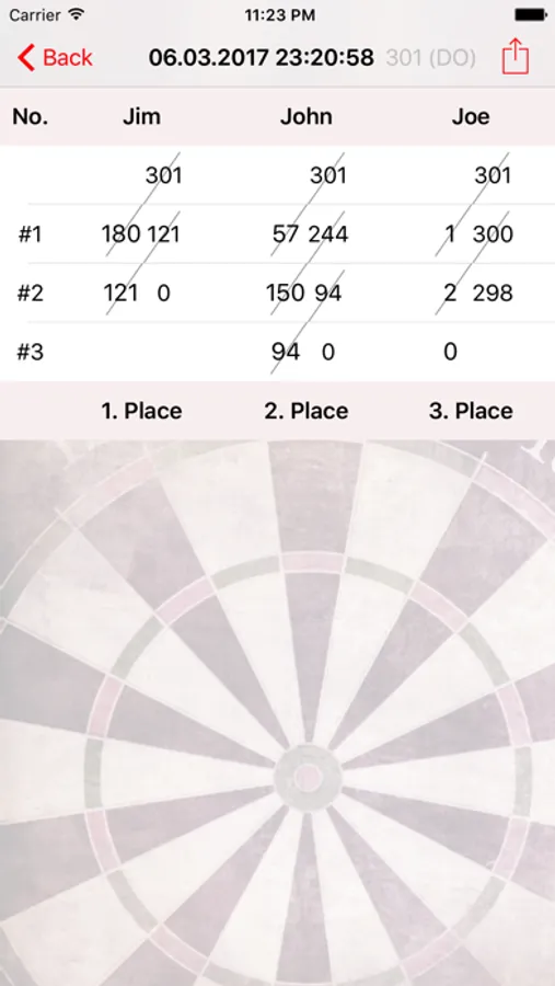 App "Darter" supports dart scoring for each player. Data can be entered over direct count input (including features like double, triple, single bull, bull's eye) or with tap on specific field on a dart board. Datas can be changed all the time until the game is finished.