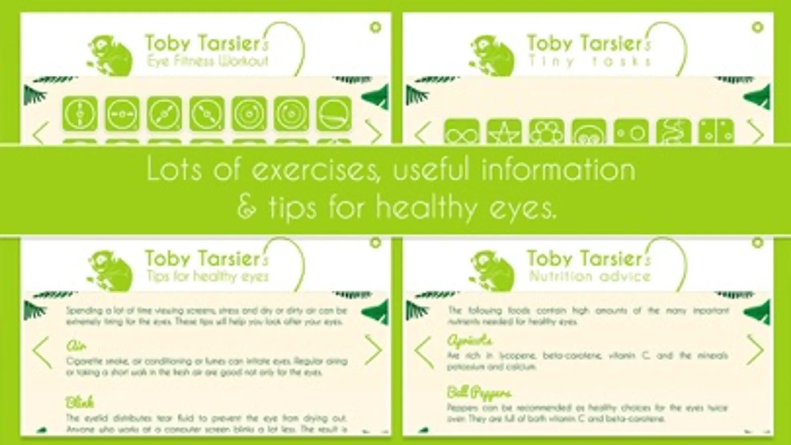 • 14 animated exercises to relax the eye muscles and preserve healthy eyesight with spoken instructions