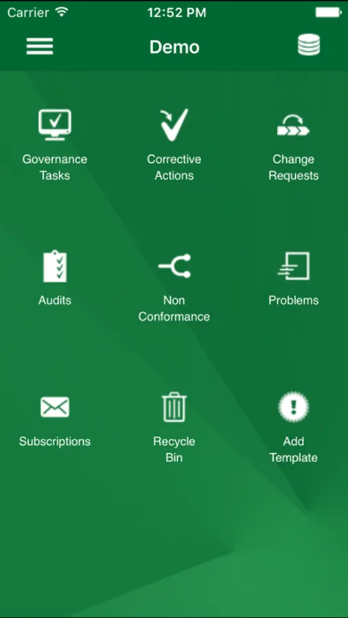 The QualiApp enables the user to connect to QualiWare's other platforms. The app is able to display information about different templates such as Governance Tasks, Change Requests, Subscriptions, Non-Conformance, and Problems. Moreover, the app enables the user to create objects using inputs such as the phones camera and gps.