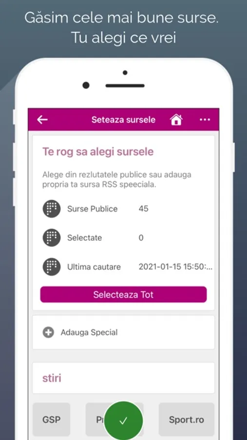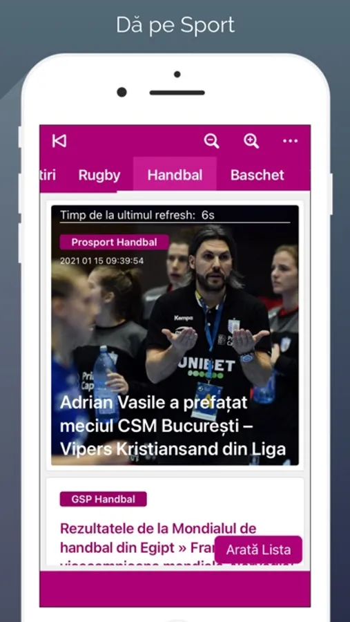 Citește știrile din sport din România, într-un singur loc. Aplicația ”Dă Pe Sport” este un cititor de fluxuri de știri care caută cele mai bune surse de știri sportive din România, pe care le poți adăuga sau nu. Depinde doar de tine ce surse adaugi și citești.