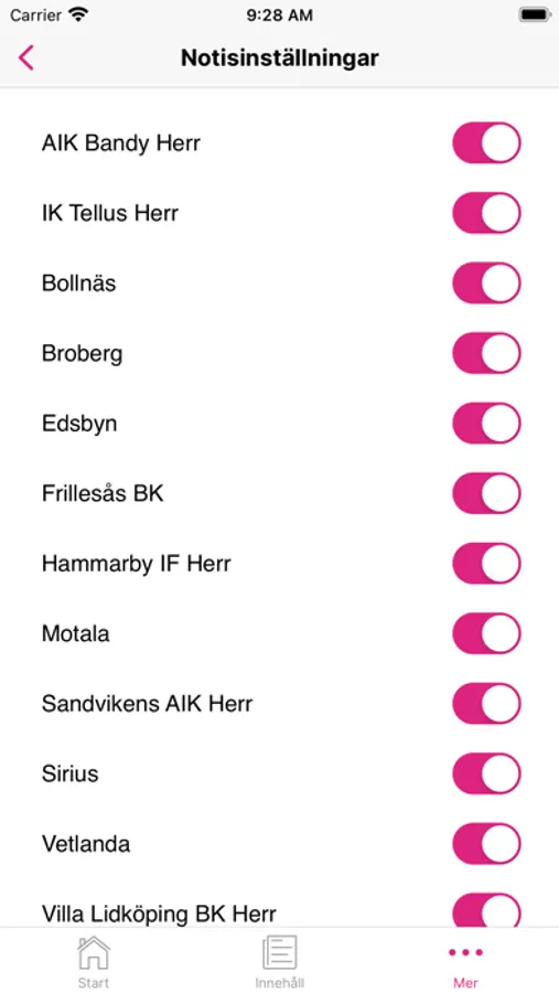 Du kan skapa ditt eget nyhetsflöde genom att välja de lag just du bryr dig om, och du kan välja att få notiser från dina favoritlag om du vill.