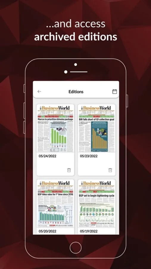 Business World provides availability to all editions of the publication by incorporating subscriptions allowing the purchase of 7 days, one month, 2 months, 3 months, 6 months and a yearly subscription to the paper.