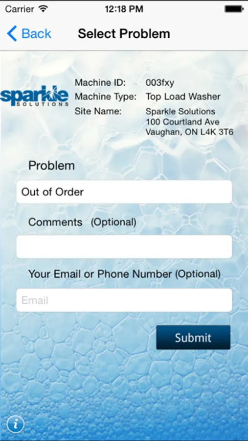 A mobile service request application to provide Sparkle Solutions customers & their residents the ability to submit a service request for a laundry machine or related laundry room equipment. This application uniquely allows you to use a barcode scanner to automatically input the Machine ID & information.