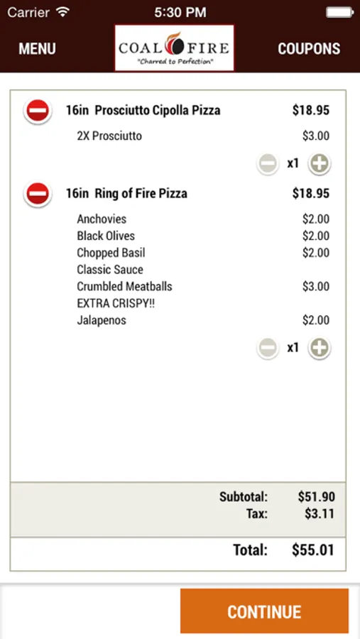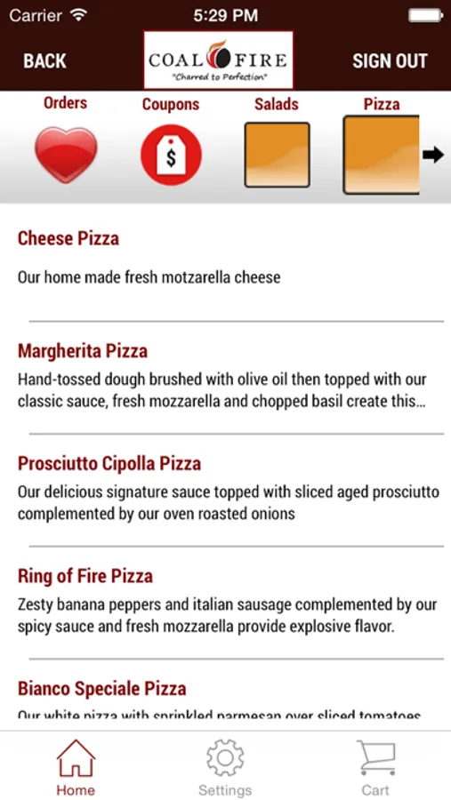 Coal Fire was created in an attempt to perfect the most popular food in America...PIZZA. Our commitment to our artisan style pizza is exhibited by the freshness of our ingredients and the attention to detail taken during the preparation & cooking process. Our homemade dough is aged, brought to the proper temperature and hand tossed to create the perfect bake. We've created three original sauces to please any palate. These sauces are made and tasted daily to ensure quality and consistency. Our fresh mozzarella is handmade in house daily and sliced, not shredded. Our Pizzaiolo brings everything together with our 900 degree coal fire oven resulting in a melding of flavors on a delicious thin crust which is "Charred to Perfection" for your enjoyment!