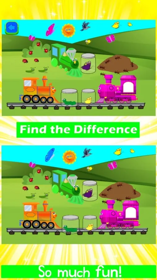 This engaging toot-riffic train find the difference game is again based on each color world. Your little ones will be looking at two scenes on the page and they have to find the difference between the two scenes. Once they find it they win that level and will be taken to the next game in that color series, and with five different levels it makes the Train Games for Toddlers FULL app even more entertaining and fun!
