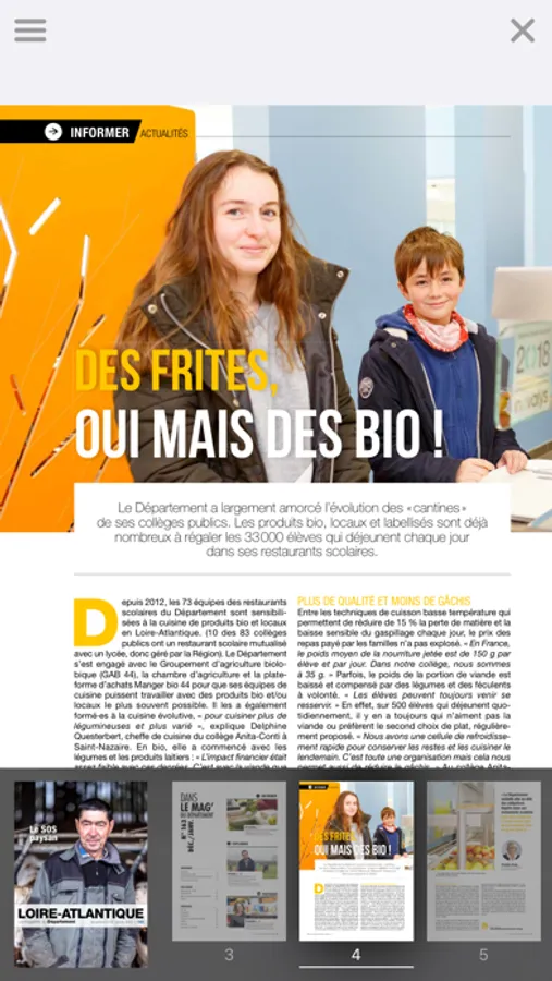 Avec Loire-Atlantique magazine, ne ratez rien de l'actualité de votre Département. L'appli Loire-Atlantique magazine est gratuite et elle vous permet de lire confortablement le magazine sur mobile et tablette. Interactive et multimedia, l'appli vous permet d'approfondir la lecture par des liens internet et des contenus associés (vidéos, diaporama, sons).