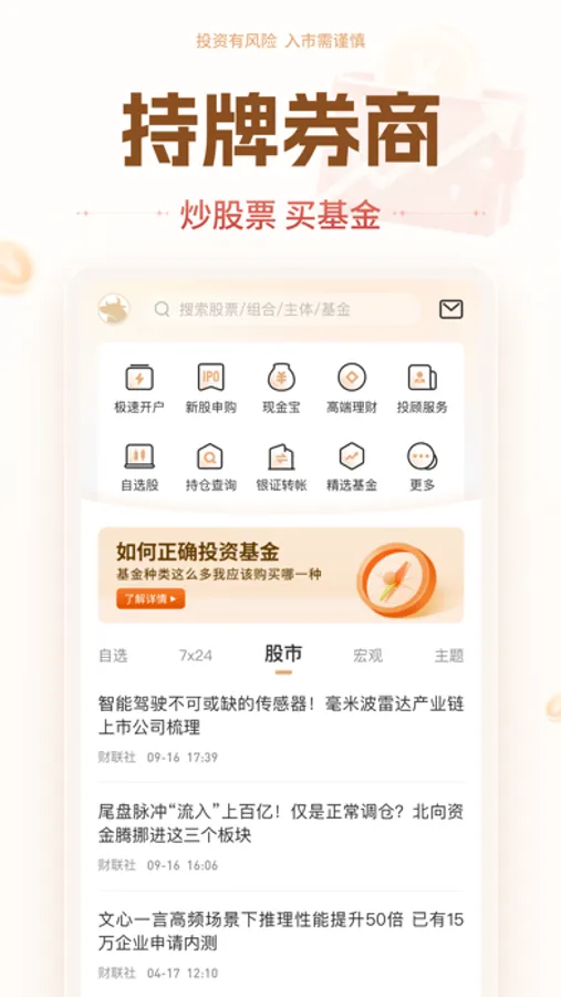 华源证券App是由全牌照国资券商华源证券打造的一款股票、基金、理财等一站式财富管理平台,全方位满足您的投资需求。