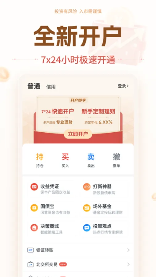 【极速开户】7x24小时在线开户服务,让您安全省心,轻松完成开立股票、基金等账户的过程。